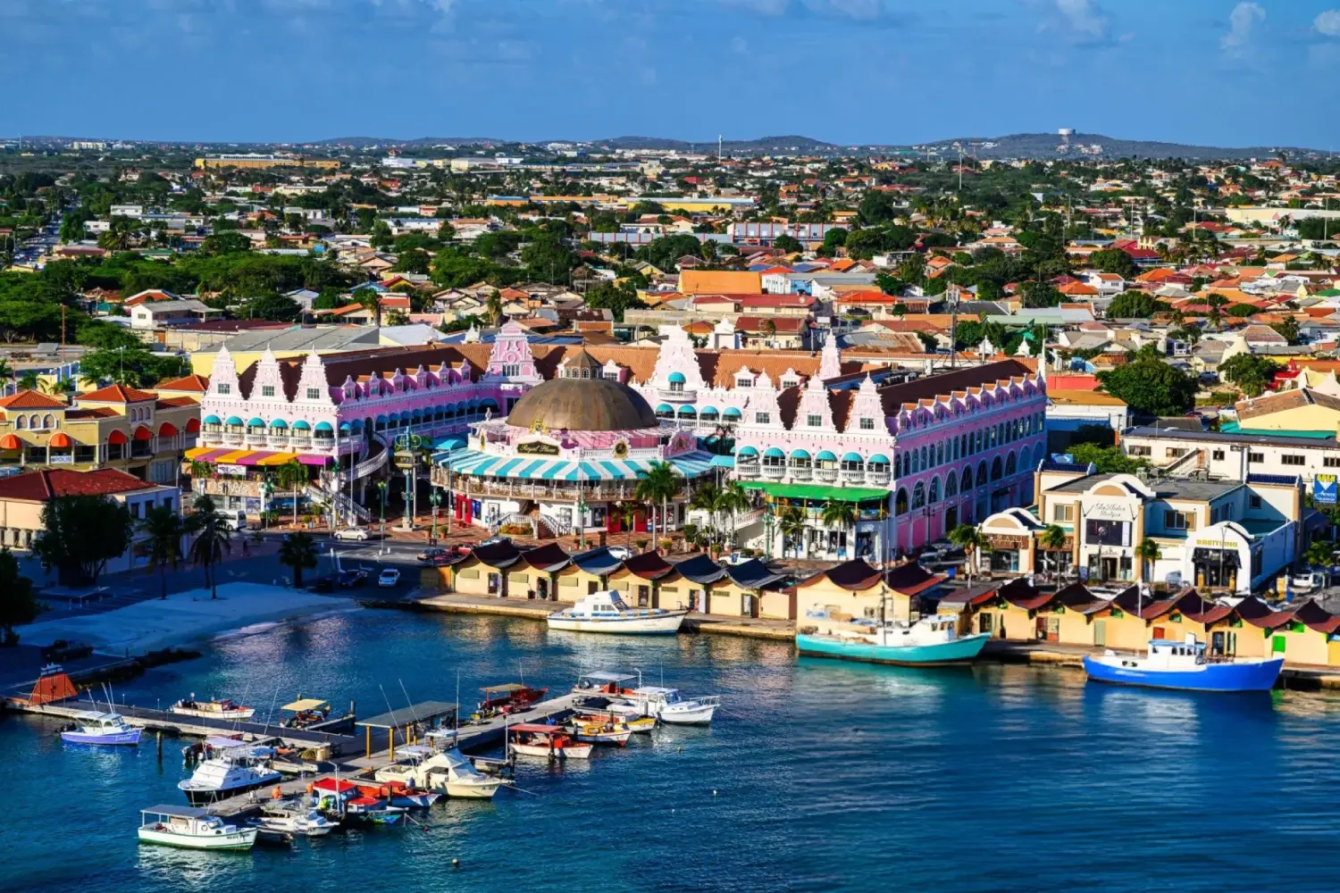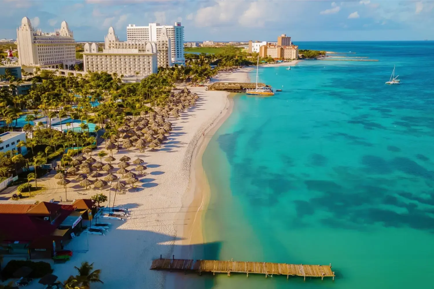 Aruba, a Dutch Caribbean island, is famous for its pristine beaches, constant trade winds, and colorful Dutch architecture. With a dry and sunny climate, it’s ideal for year-round travel and a variety of water sports and desert adventures.
